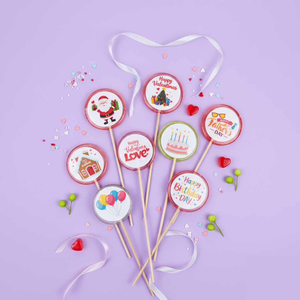 Turn your moments into delicious memories with our custom lollipops and edible prints — handcrafted to make every event brighter.